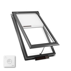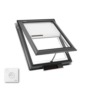 VELUX Solar Venting Skylights, known as the “Fresh Air” Skylights, represent a significant advancement in skylight technology, blending eco-friendliness with practicality. These skylights are equipped with a small solar panel that efficiently harnesses daylight, even under cloudy conditions, to power a battery system. This battery system operates the opening and closing mechanism of the skylight, making it a self-sufficient unit that doesn’t require any external power sources. A key feature of these skylights is their rain sensor, which automatically closes the skylight at the first sign of rain, providing peace of mind and added convenience for homeowners. Available for both curb and deck mounted installations, VELUX Solar Venting Skylights are versatile in their application, making them suitable for a wide range of architectural styles and roofing requirements.