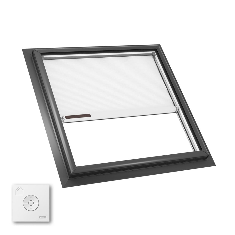 VELUX QPF 3030 Self Flashing Skylight with Solar Powered Shade – Room Darkening (Double Pleated) – White