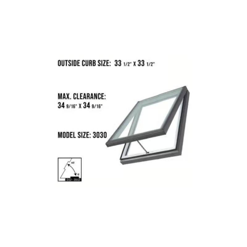 The VELUX VCM 3030 Manual Venting Curb Mount Skylight is a true breath of fresh air – allowing natural light and ventilation to grace any home. Its simple design requires no complex wiring or solar-powered components. Open with a twist of an easily accessible handle for in-reach applications, or a rod for out of reach ones.