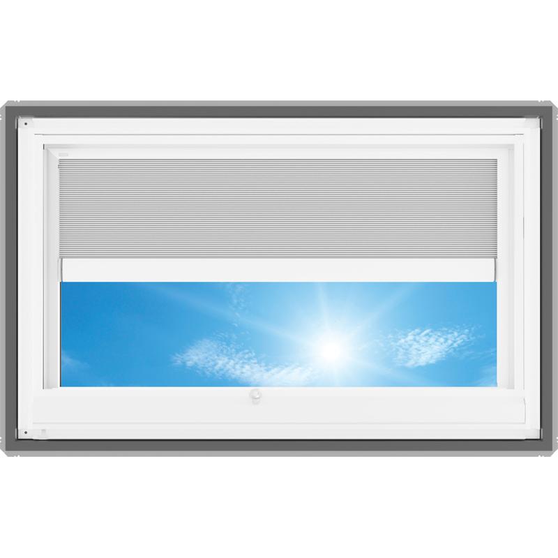 • Room darkening shades (color: white) allows you to control the amount of light and improve the skylight’s energy efficiency.